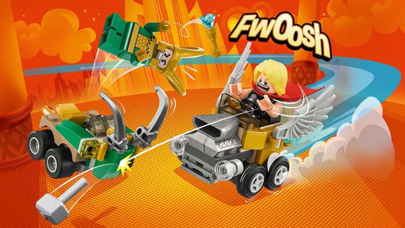 Iscensätt en broderlig Mighty Micros strid mellan Thor och Loki! Kör deras häftiga Mighty Micros bilar i topphastighet. Attackera med Thors mäktiga hammare Mjölner och slå tillbaka med Lokis spira. Vilken av bröderna kommer att vinna? Du bestämmer!